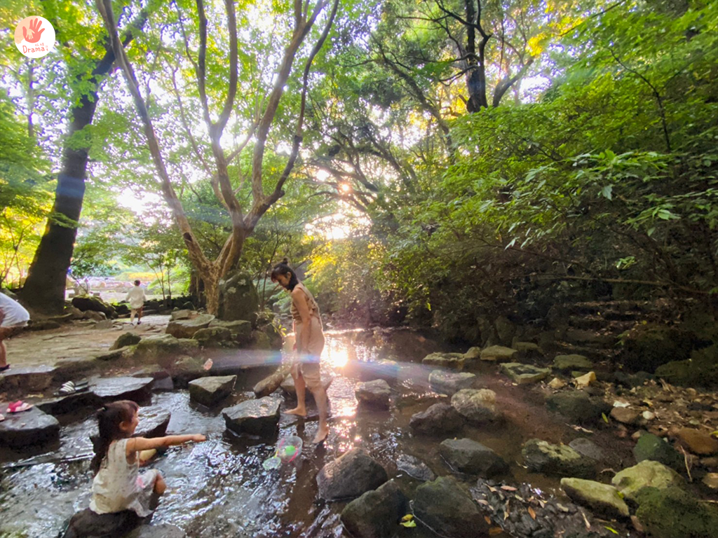 這邊很棒的地方是有很多大平面的石頭,大人小孩都可以坐著玩,踩踩溪水也很放鬆