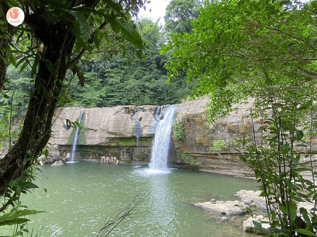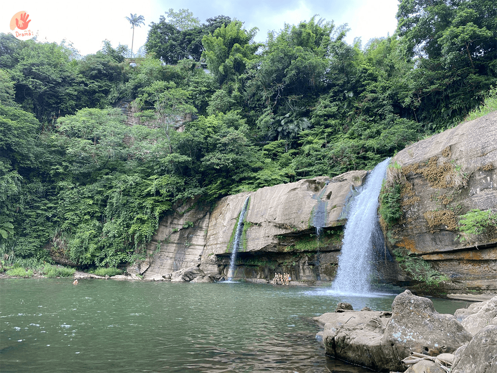 [嶺腳瀑布] 這邊的水較深,不適合小童玩水,我們這天來訪,看到好幾個青年,游到瀑布底下坐一排,整個就聞到滿滿的熱血,這畫面叫青春呀!