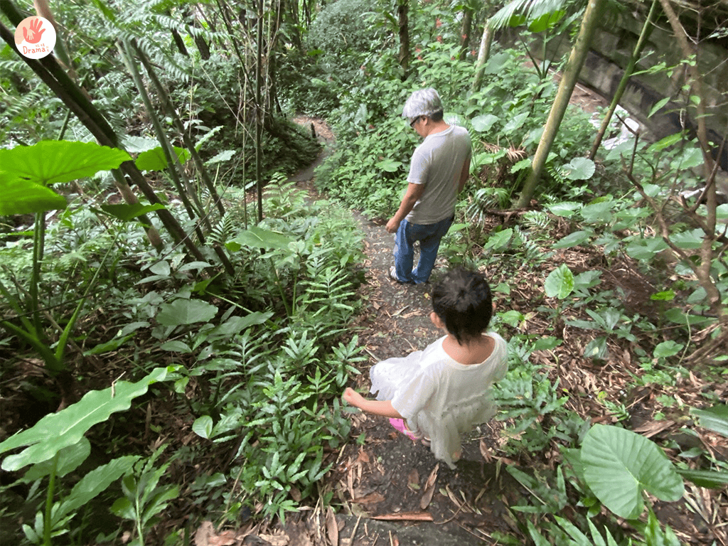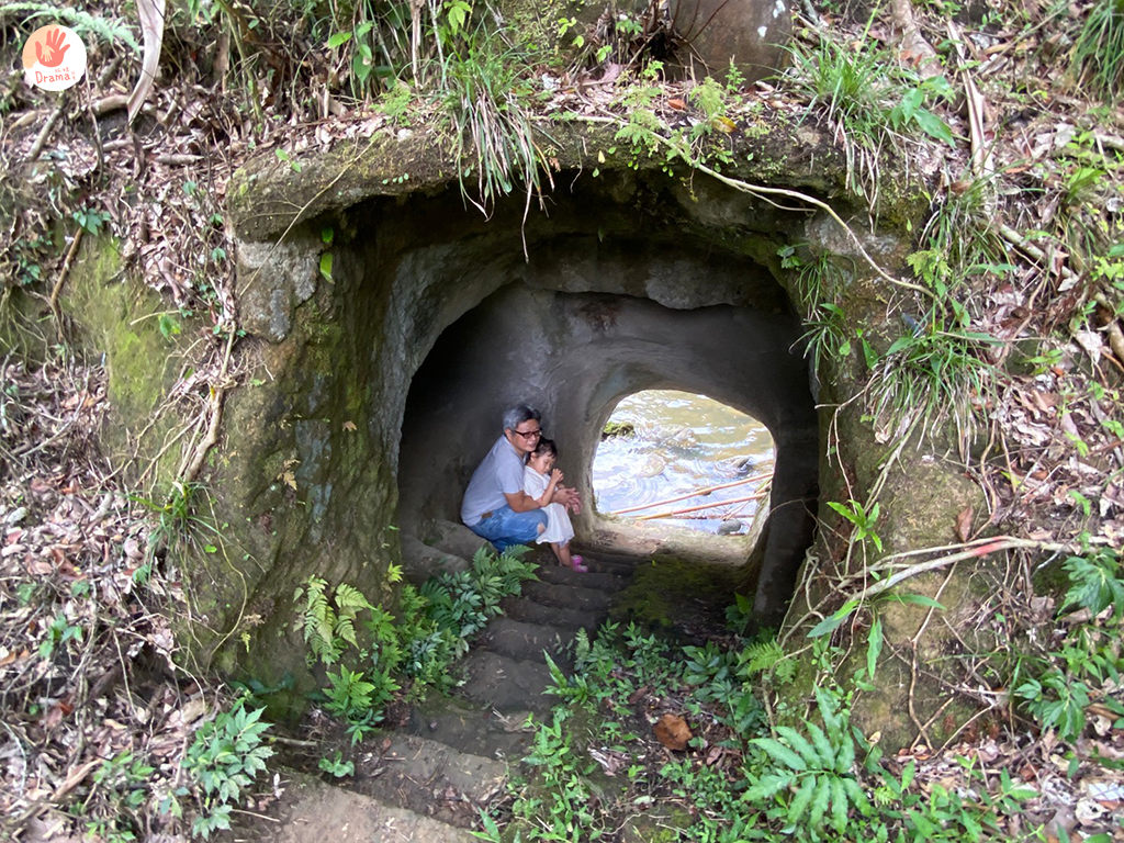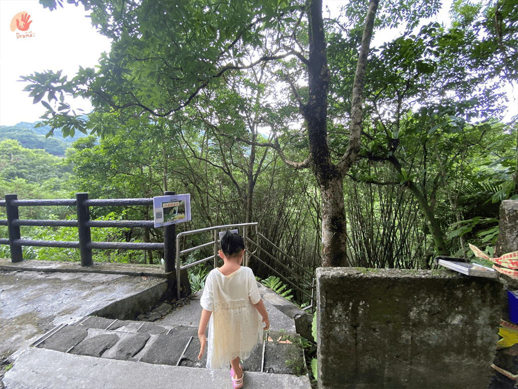 媽媽是用涉水過來的,爸爸一直很好奇後方的階梯到底是通往哪裡,所以我們也再去探險了