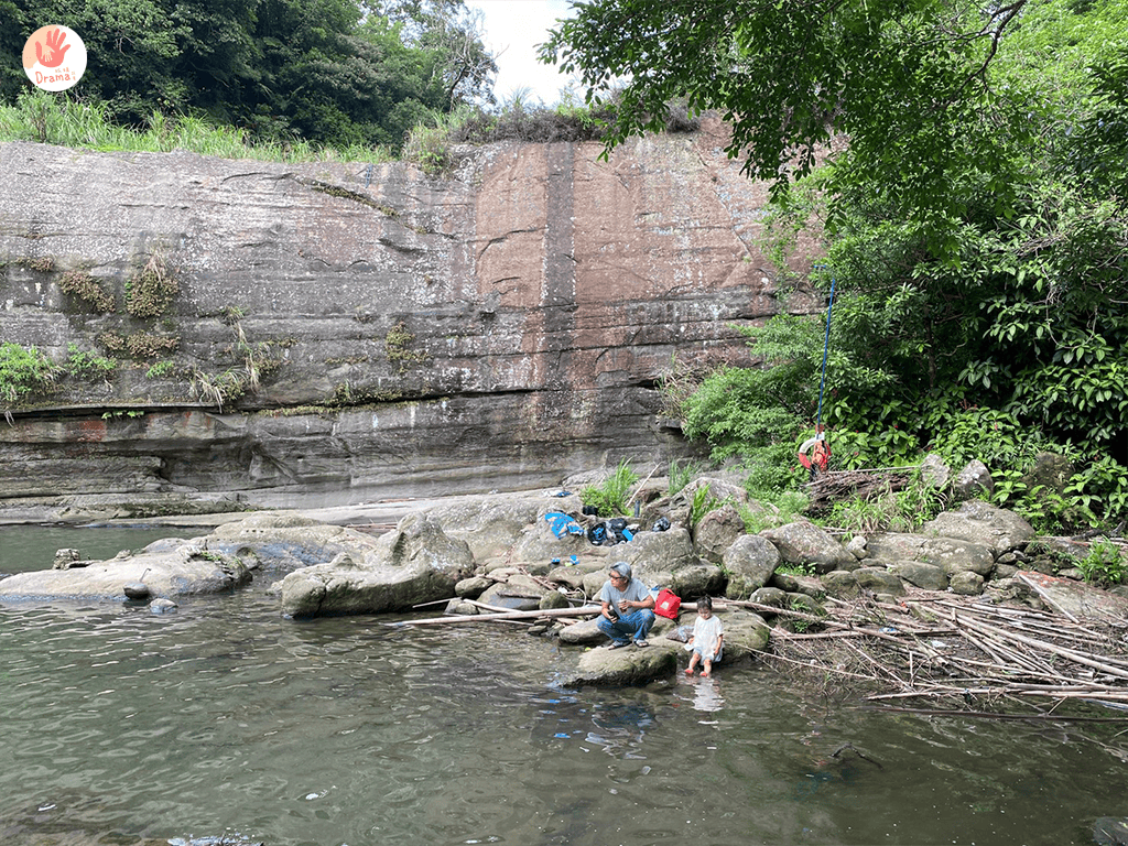 這裡不適合小朋友,因為水域是深的,女鵝來這裡只給她泡泡腳,我們後方有一群熱血青年,瞬間勾起自己年輕也曾經這樣瘋玩