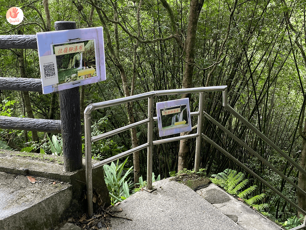 一路走到底快到嶺腳瀑布的路口對面就會看到下面的牌子