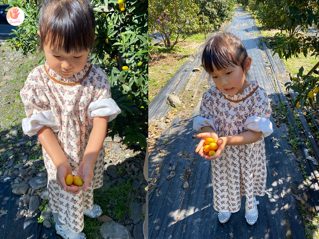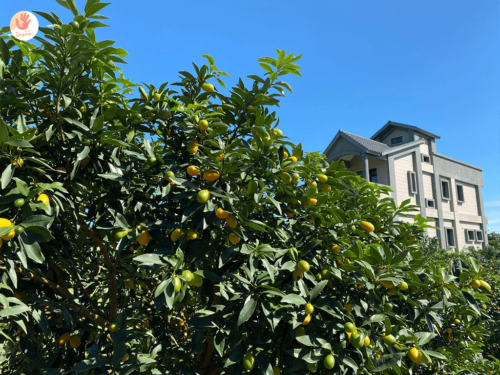 來到這個果園,一開始沒聽清楚老闆說這邊只有一棵橘子樹,所以整個果園,我們只能在那唯一一棵樹採橘子,其他都是金棗,當然老闆也有讓我們採一些,給孩子們體驗一下