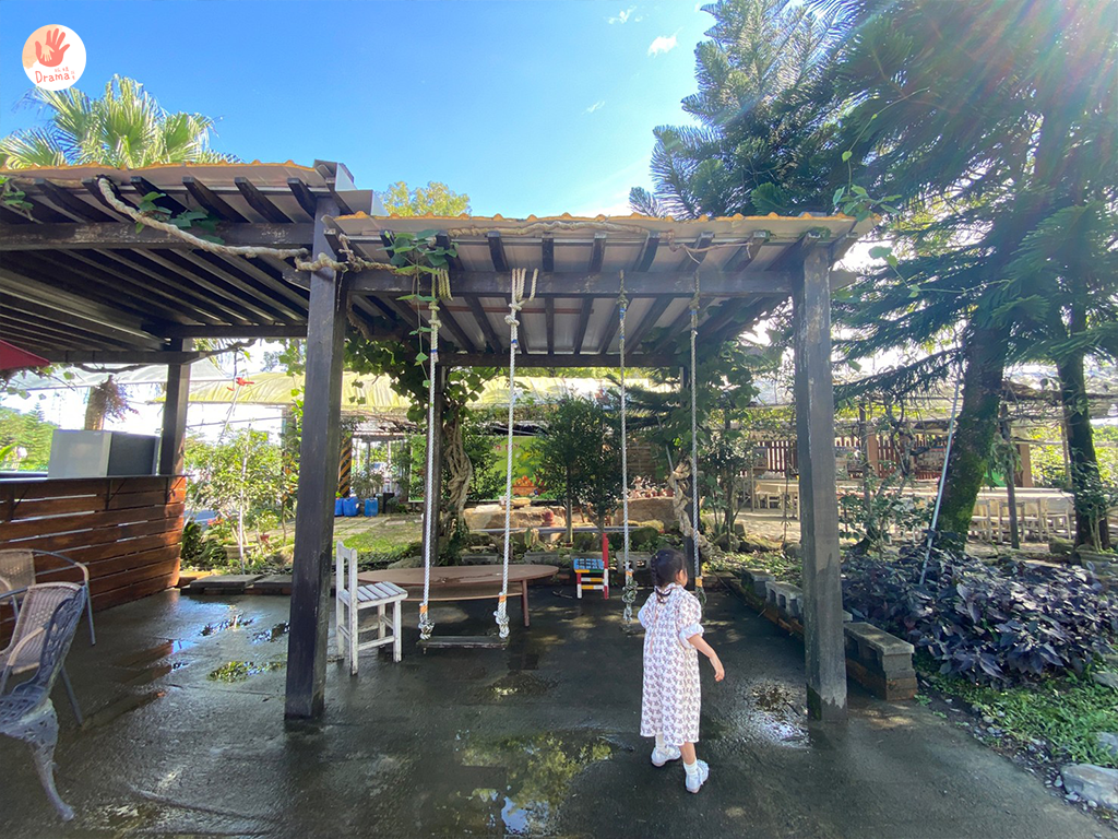 這邊涼亭有二個小鞦韆,是孩子們的愛