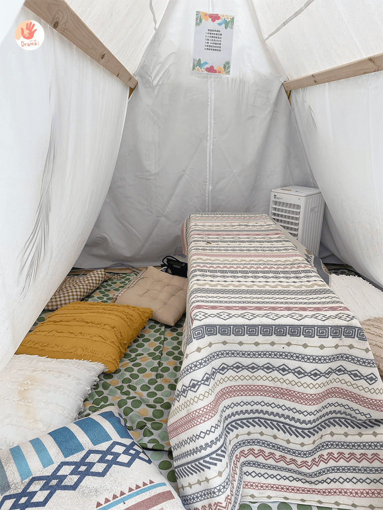 帳篷裡是波西米亞的風格,就讓人可以一直懶在這裡聊天,超愜意