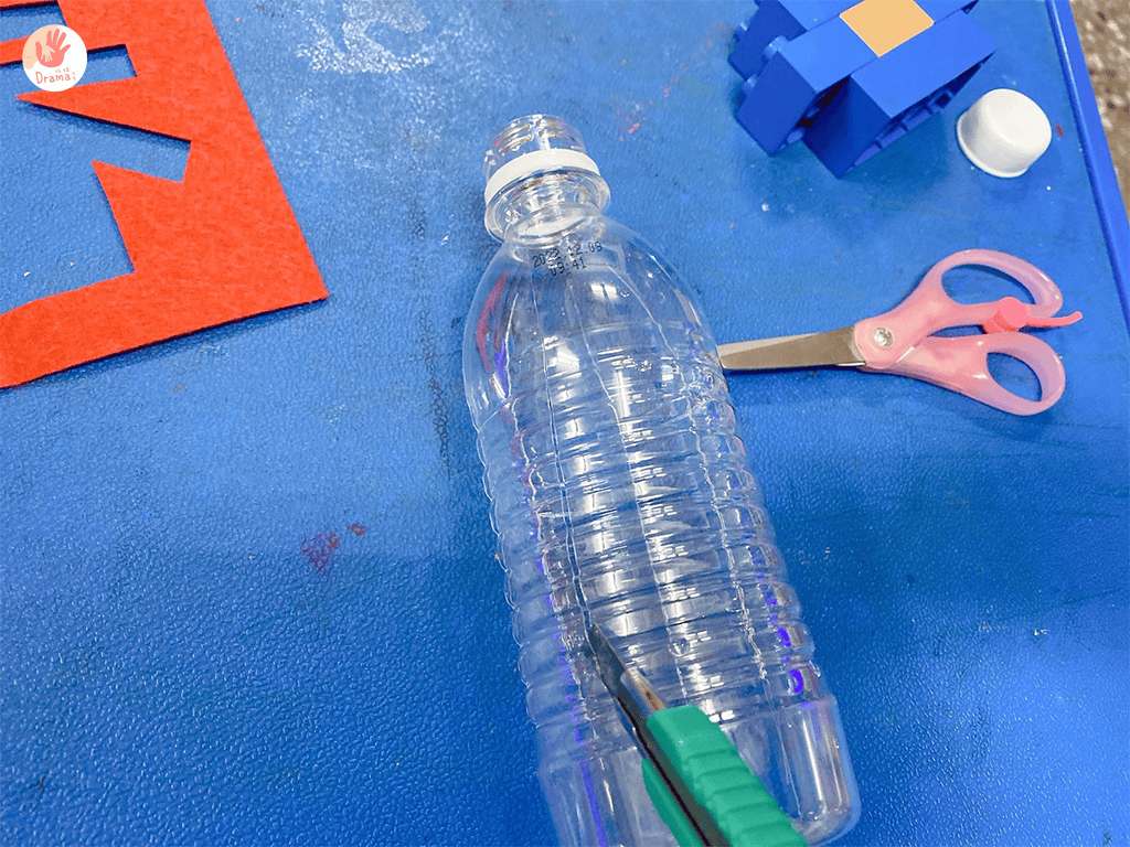 我這個是小瓶350ml的寶特瓶,將整個瓶身劃1字直線