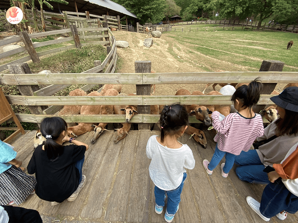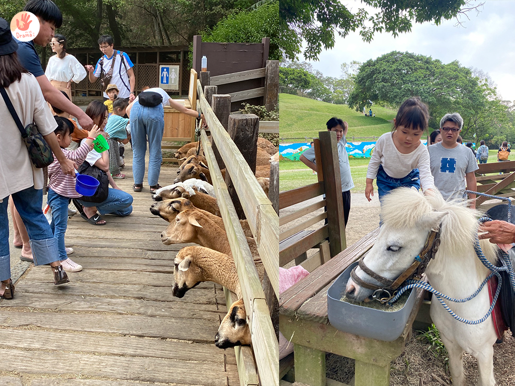 羊群們擠破頭的畫面很可愛也很有趣,只是因為羊群反應很大,孩子們都有點怕怕,爸媽們也都很小心一直在旁提醒,怕他們伸手過去