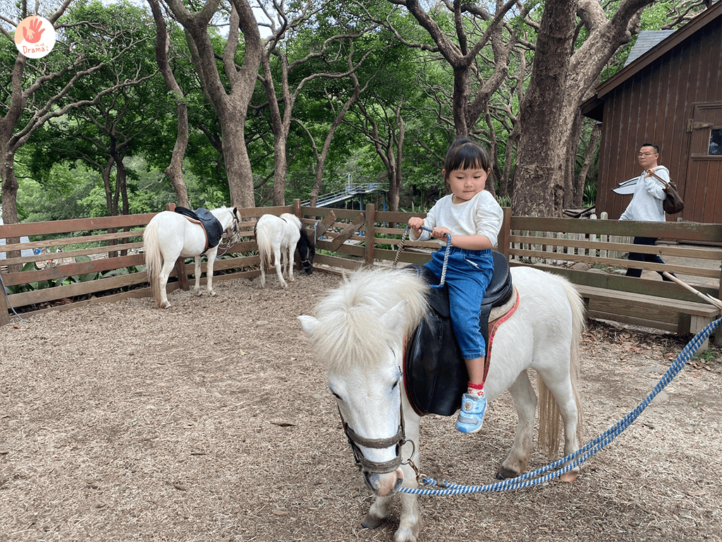 寶包看到迷你馬就想坐,不曉得是不是卡通看太多,所以不怕馬,坐上去之後架勢十足還說自己是嘻哈牛仔