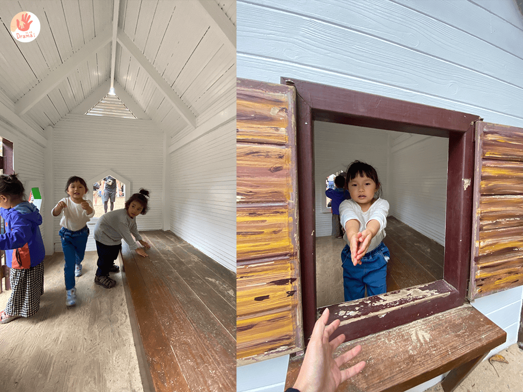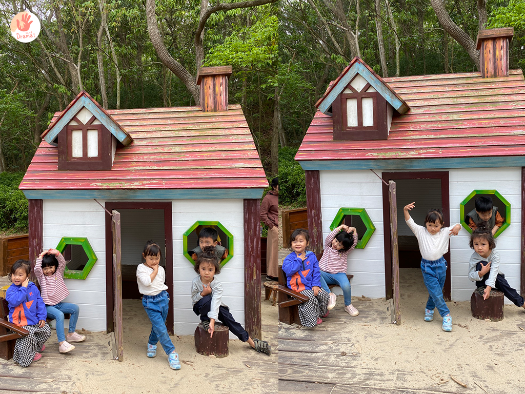 再繼續前行,孩子們在一棵樹下就玩起來了,而且四周環樹,天然的森林風景,配上孩子們的笑容,一切都很美好,只是當天風吹起來很涼,不敢讓孩子待太久,因為太空曠