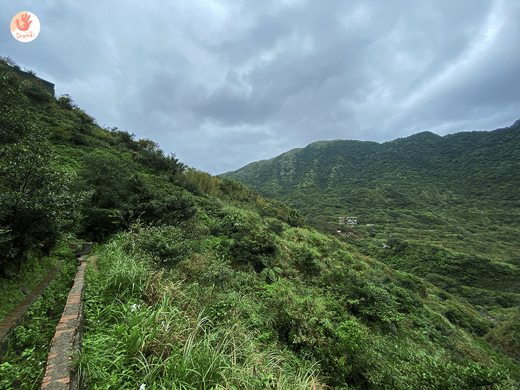 走過石壁摸乳巷後,眼前是大山的景致,此時的路只有紅磚一條線
