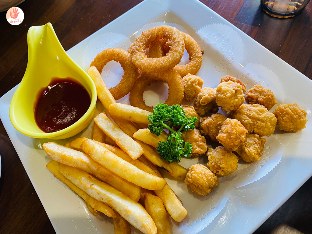 綜合拼盤就不能大方點嗎!220元看起來都略有點空虛,但是算了,東吃西吃一下,又室內外跑來跑去,爸媽真的隨便都飽了,這裡還蠻不錯的,很適合放風小孩,來礁溪可以安排這裡用餐喲