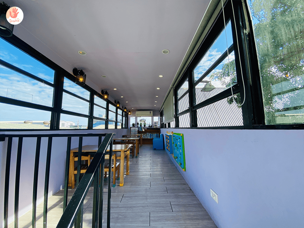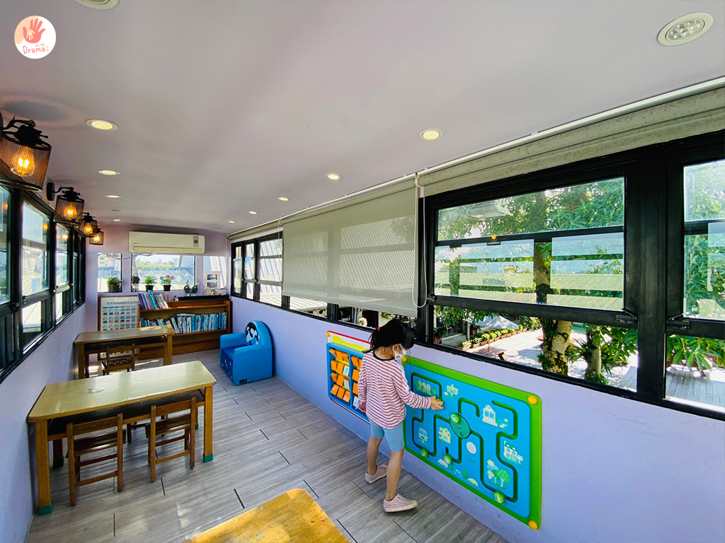 巴士後方還有二個小房間,一個是親子活動區,一個是烘焙區,當天這區沒有看放,從窗外看進去裡面是沒有玩具的,所以真的就是遛爬行的小小孩