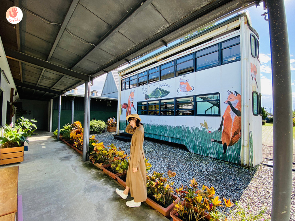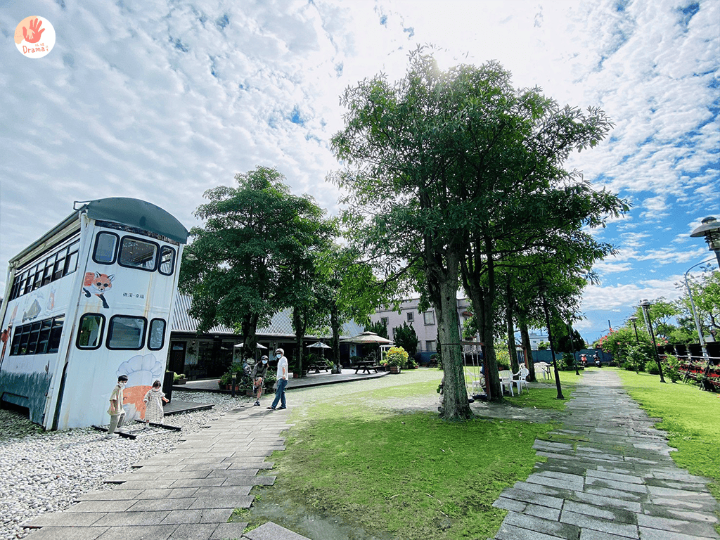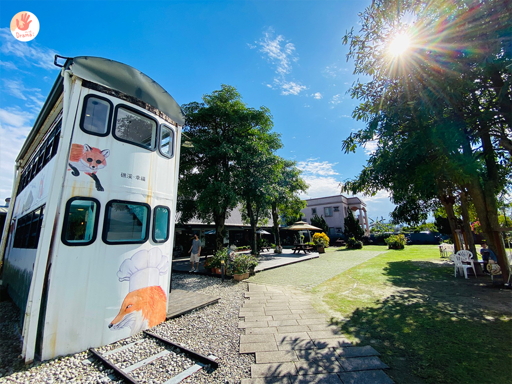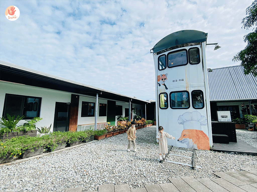 來到這裡基本上路邊都是白線停車沒什麼太大問題,走入餐廳,就可以看到超醒目可愛的彩繪巴士和草皮綠地,光是要把小孩拉到室內就要費上一翻功夫