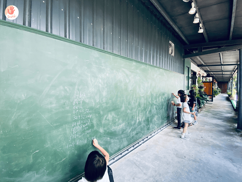 這邊還有一塊大黑板,愛畫畫的小朋友可以有個大畫板