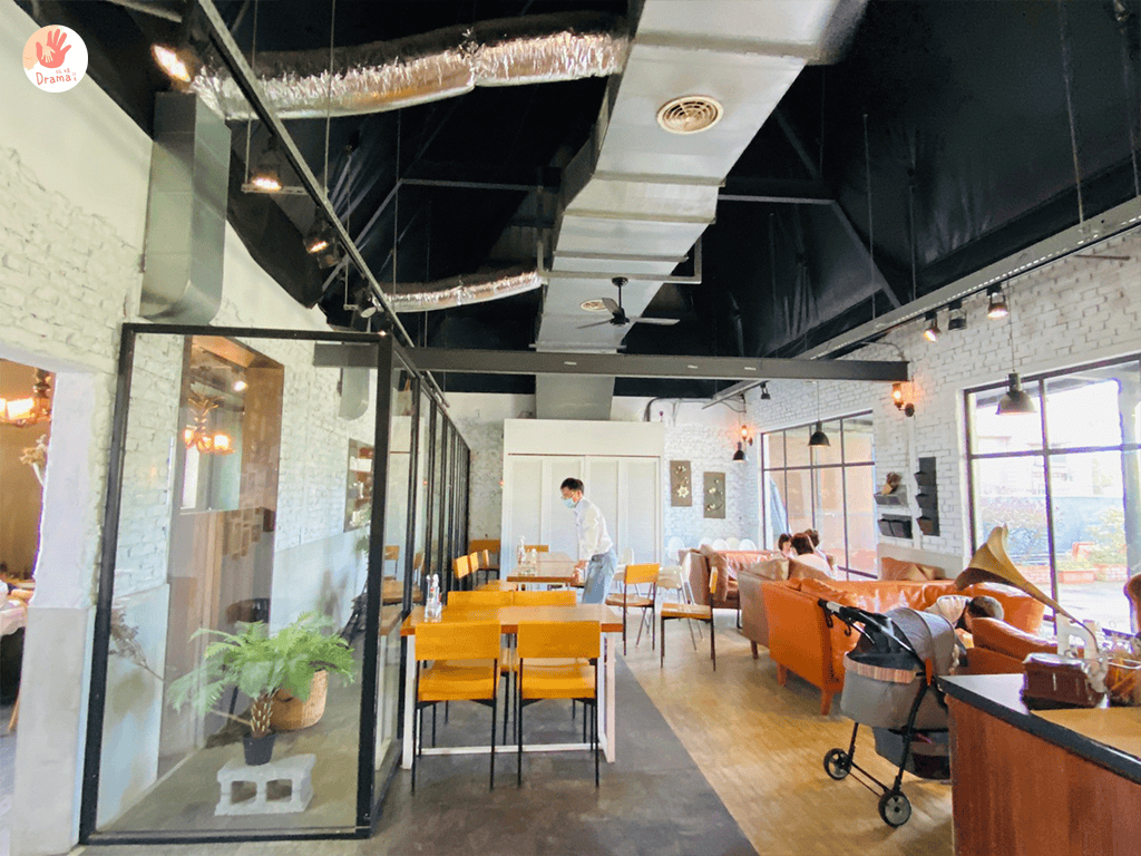 工業風落地窗格,就算是其中一人在外面遛小孩也可以看得很清楚