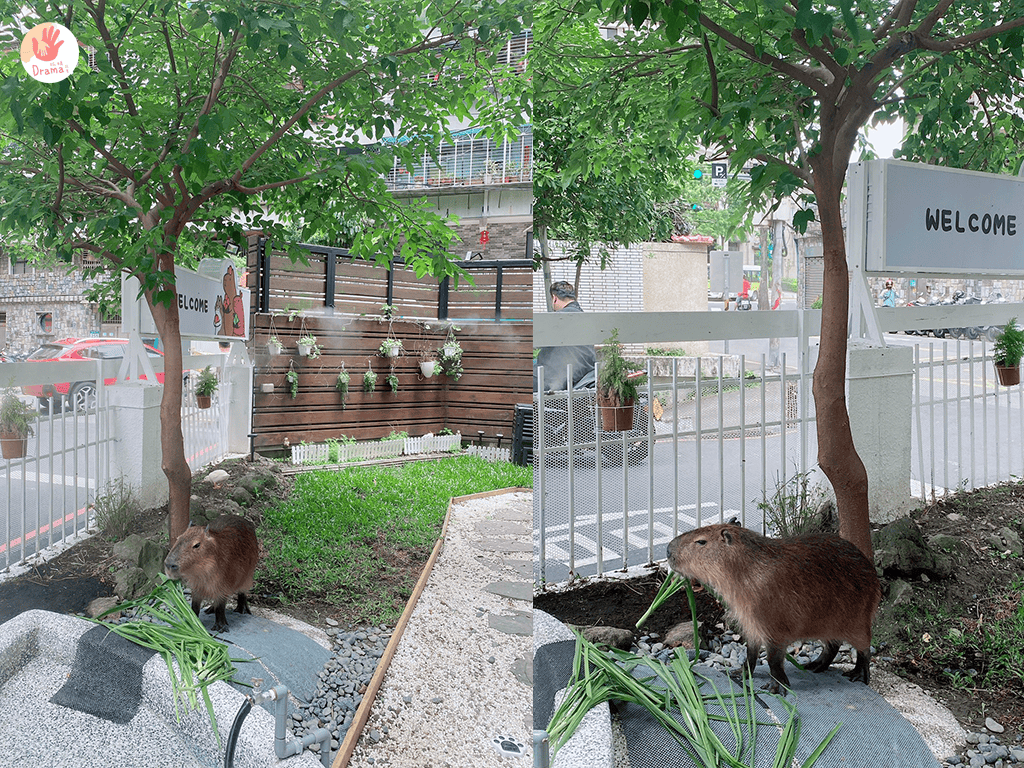餐廳外的外牆和入口的大圖都可以看到水豚插畫實在是太療癒了