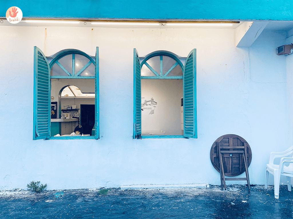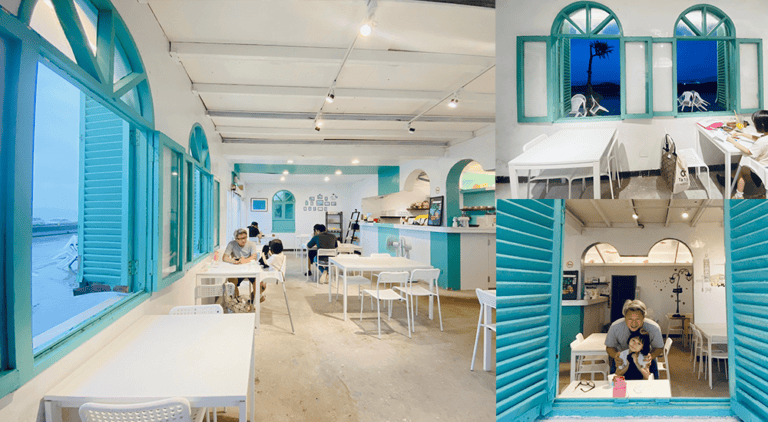 有著Tiffany藍和白色相間的建築物,很簡單也很清新,來這裡看海,空間不會覺得很壓迫