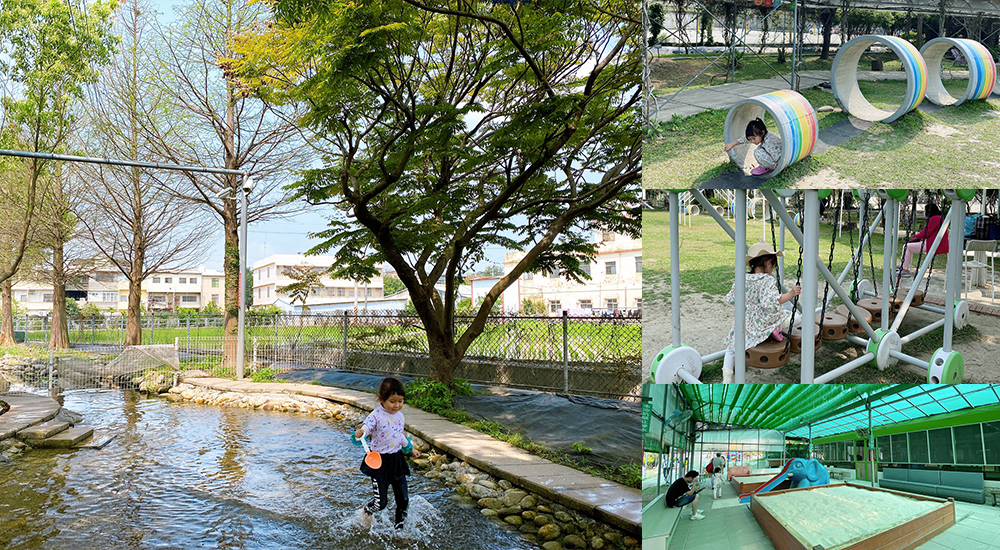 這裡也有休憩的棚架座位區,一旁還有兒童投幣設施