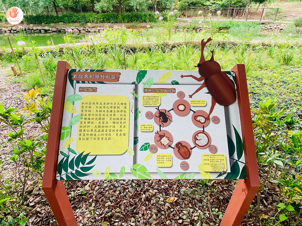 飯後一定要到停車場這裡的[旗竿湖獨角仙生態步道]走一走,我們來訪時還不夠熱,所以獨角仙還沒出來