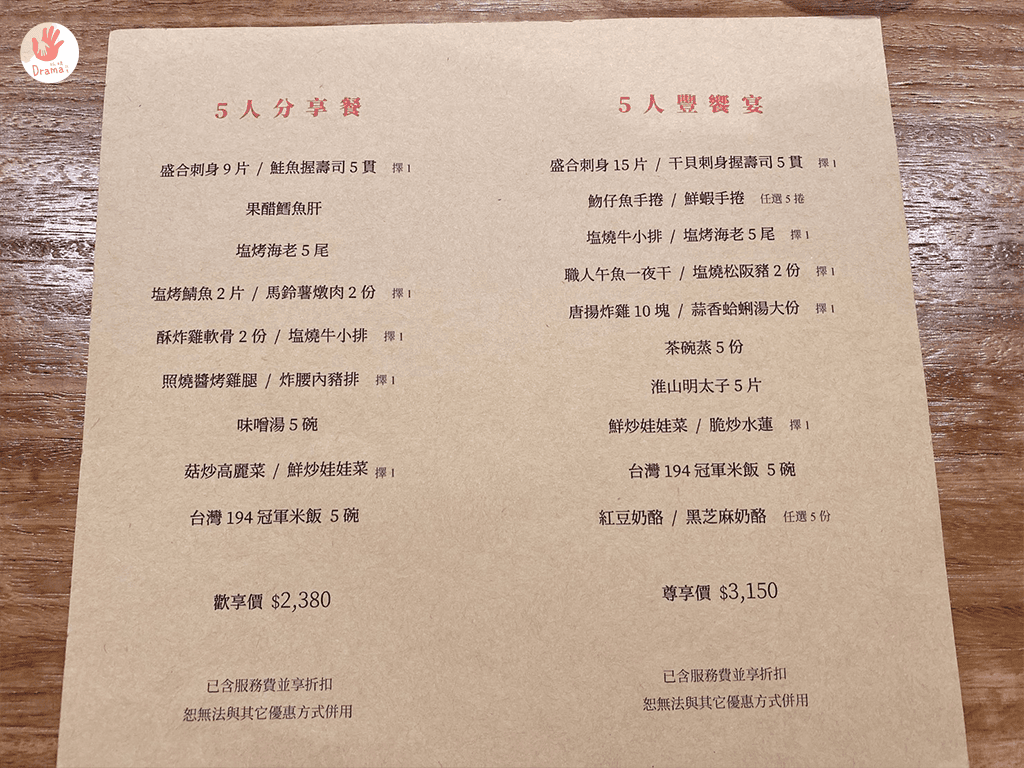 這裡有3人和5人分享餐和豐饗宴的精選套餐可以選擇