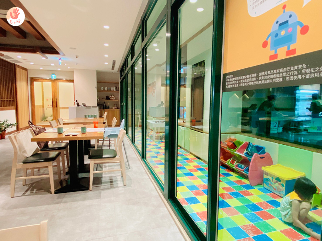 女鵝一進門就直衝要進入遊戲區,提醒遊戲區晚上只開放到八點,所以來用晚餐,可以先讓孩子去玩一下,不然吃完飯要去可能就要被關燈了,遊戲區有煮菜玩具,也有小樂高池,大童小童都可以找到樂趣
