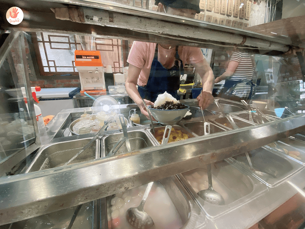 菜單就在牆上,除了牆上的組合,也可以自己選想要的四種口味,就像古早味的剉冰一樣,這裡沒有帶位要自己找位置,要先結帳!假日生意很好,但吃冰大家都吃完就走,所以翻桌率還蠻快的