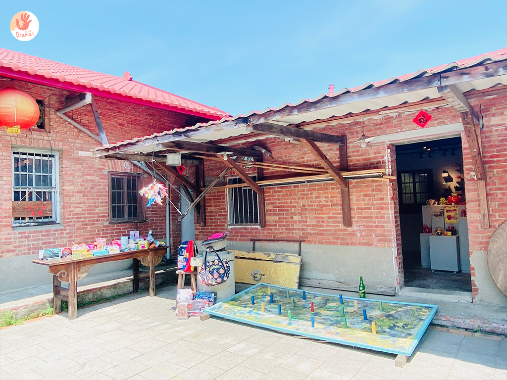 三合院前的小院子就擺放了童玩套圈圈,是另外收費的,一籃30元