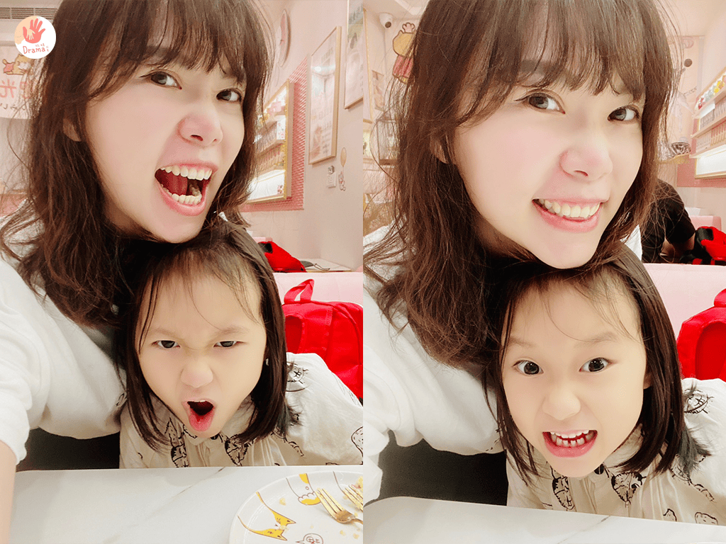 等候的時間我們母女就在玩自拍