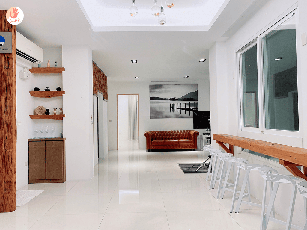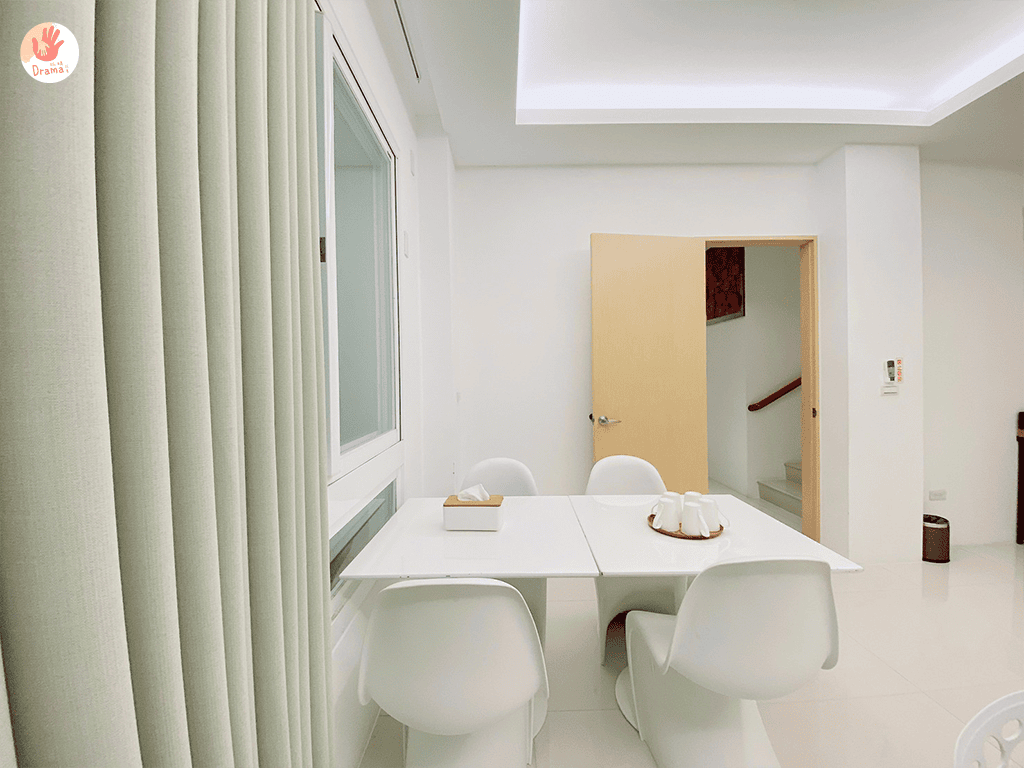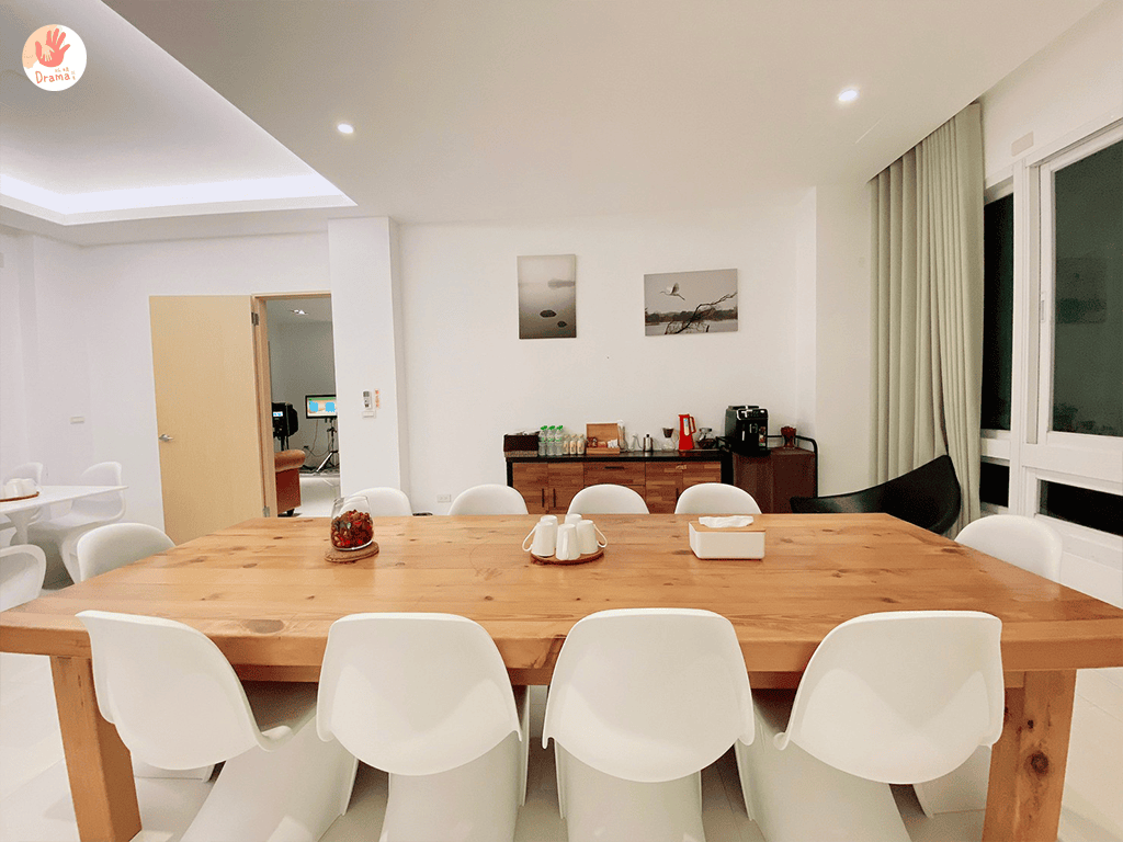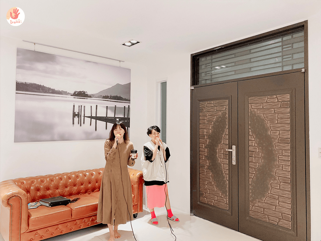 歡唱KTV空間,捨棄傳統常見的大茶几擺設,只使用小茶几,空間留白,也多了更多樂趣