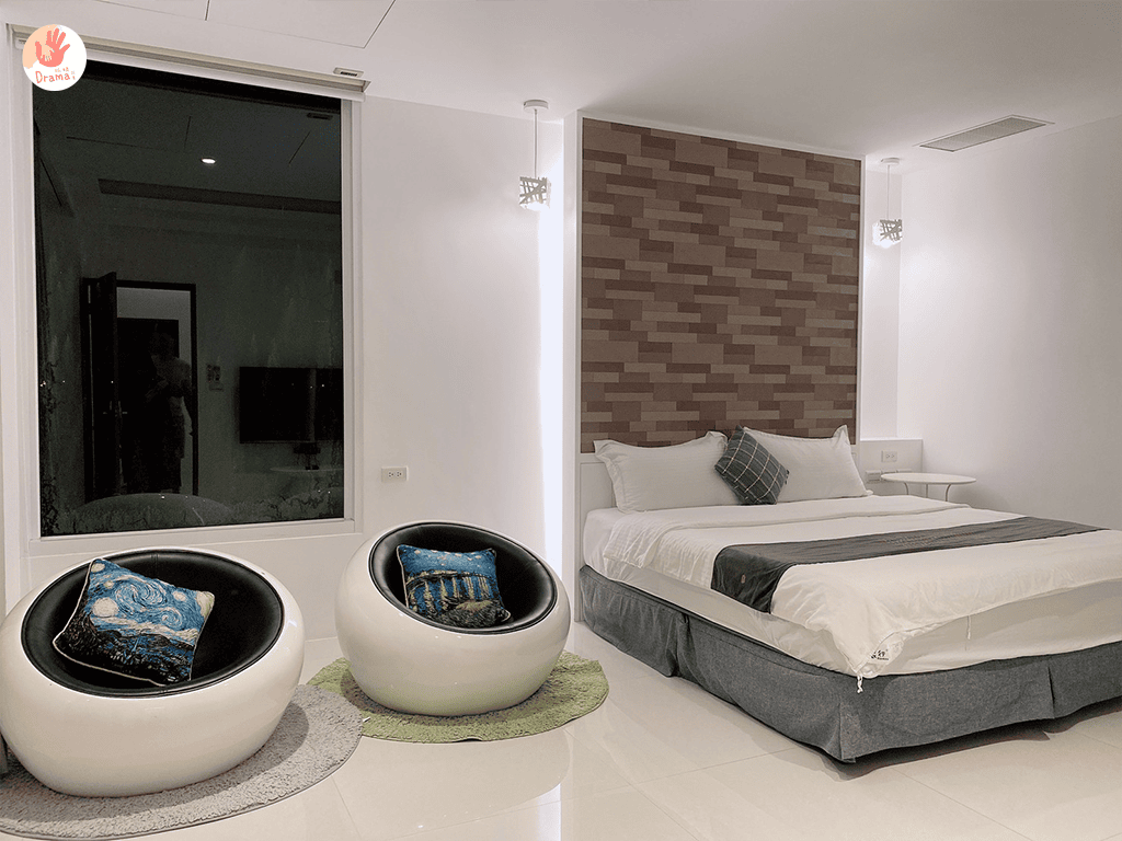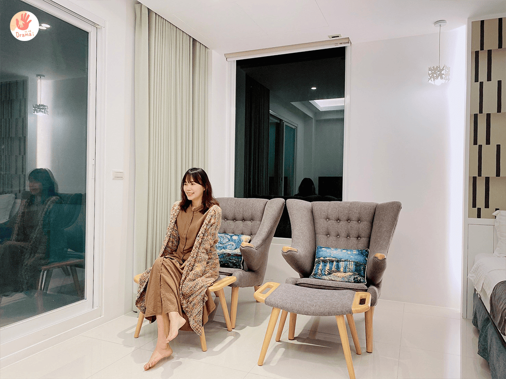 這是二人房,單人椅的配件挑選也很有個性風