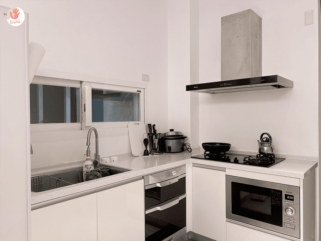 許多民宿都會設限不能開火,但[十六崁民宿]純白設計完成不怕你煮,廚房用品也很齊全