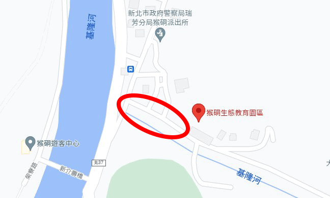 Google map導航搜尋 [猴硐生態教育園區] ,在未到園區前就會看到紅圈起來的猴硐玩水秘境,一旁也有空地可以免費停車