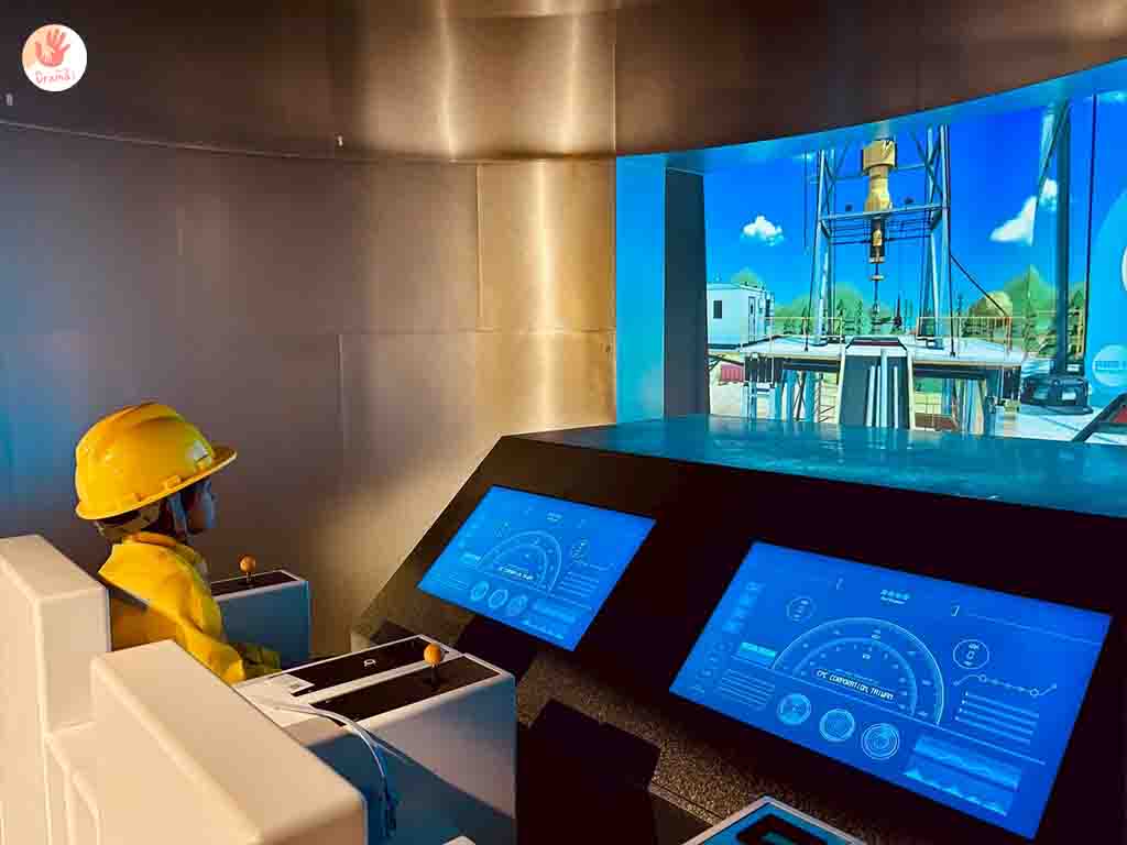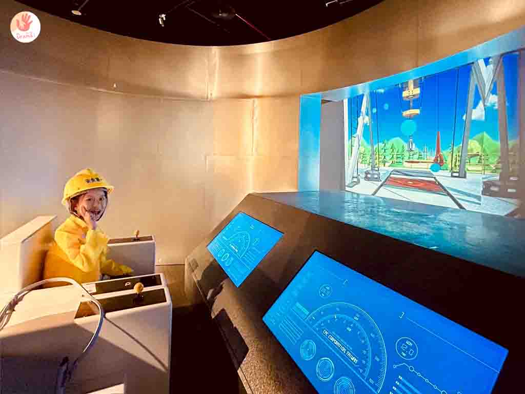 接下來挑戰操作開採石油的流程,女鵝玩得很開心,玩了好幾遍