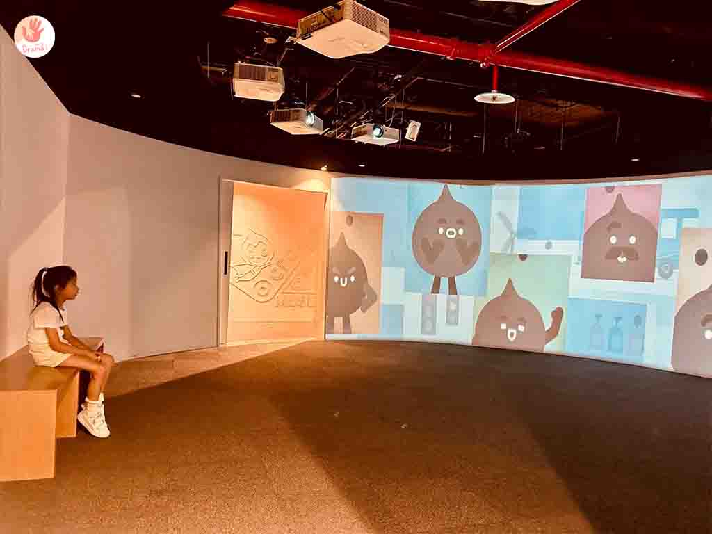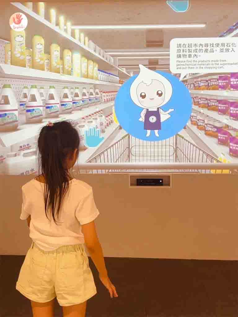 入場先進入180度螢幕認識石油的開採,小孩跟著動畫聽故事