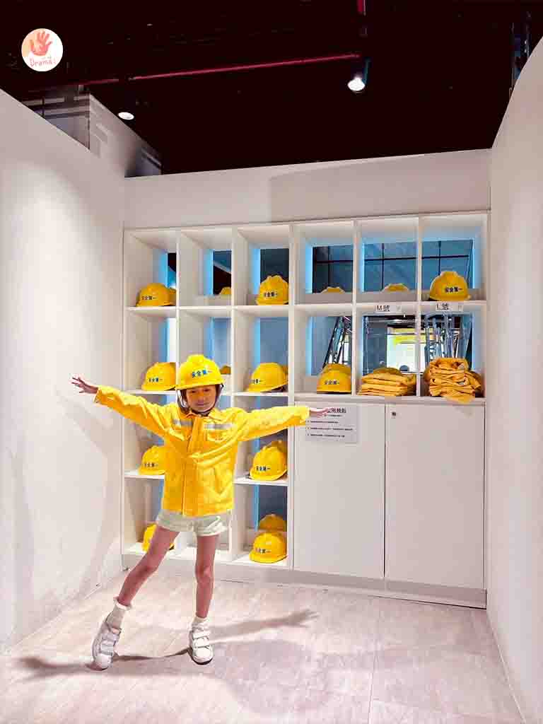 [中油石油探索館]還準備了M號和L號的工地依和工地帽,要出發闖關時也可以換上一關一關闖關玩