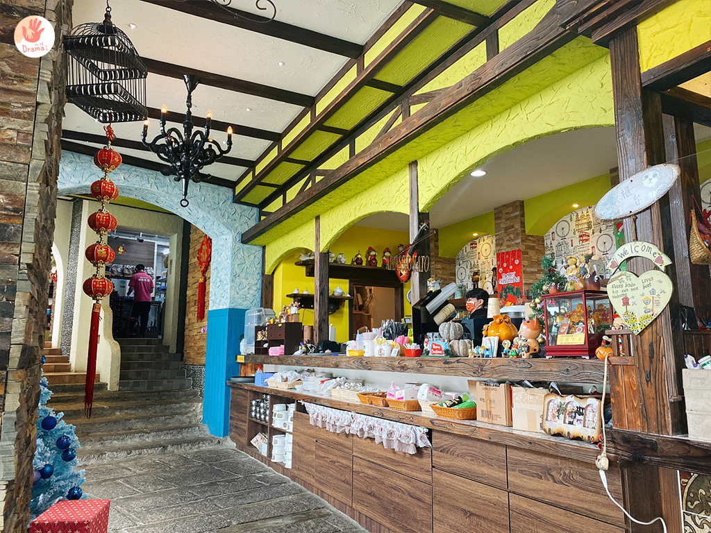 走到餐廳的廊道,裝潢是走鄕村風格,每個小區塊都很好拍
