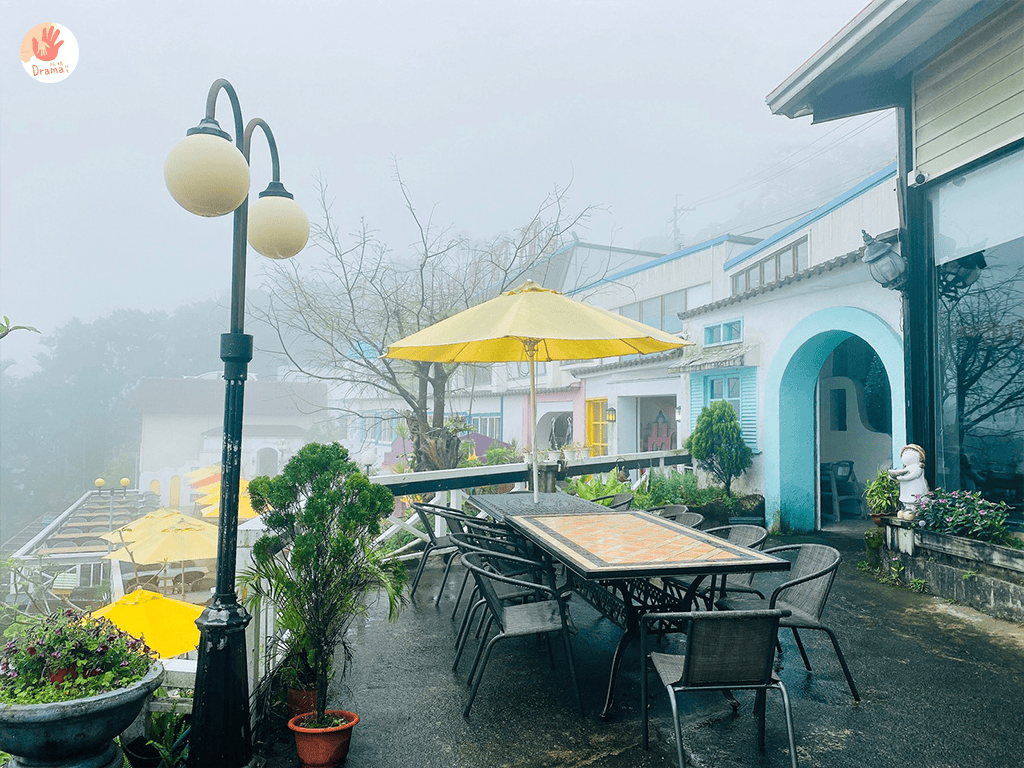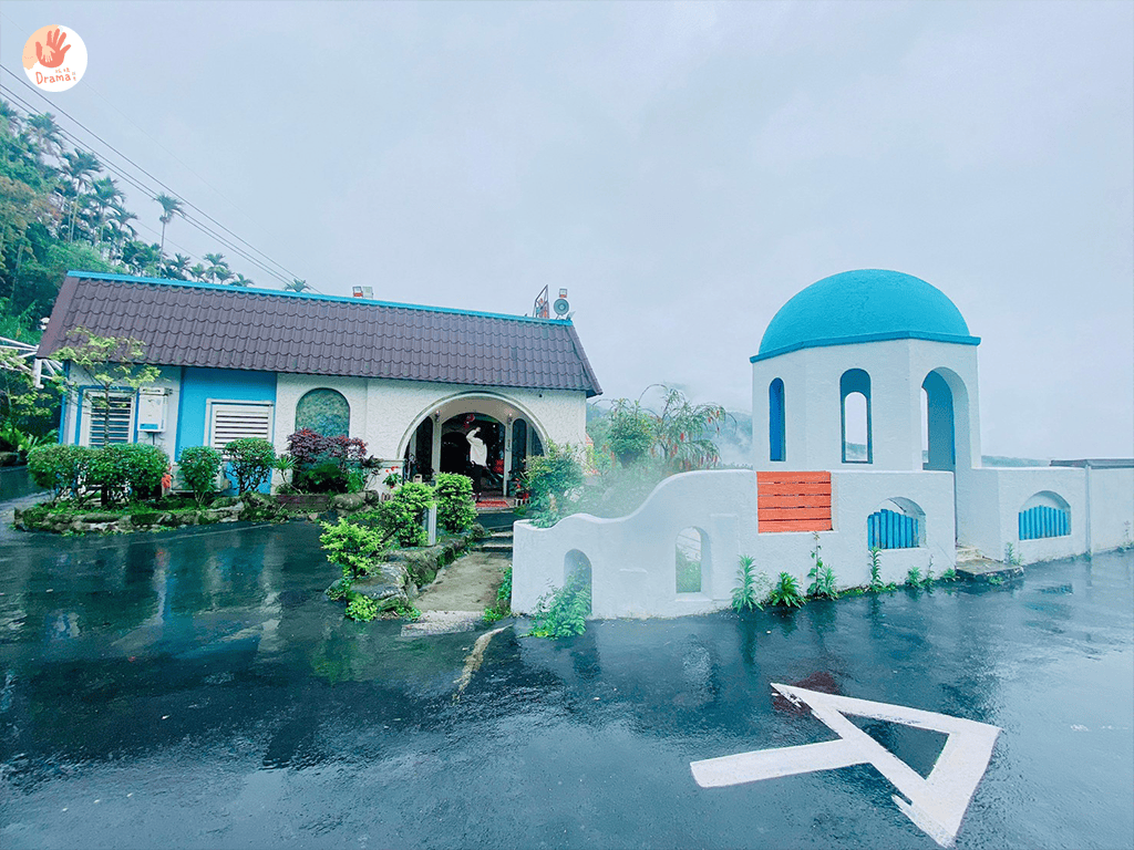 來到[啡你不可庭園咖啡廳]停車下來就看到小希臘的意象,雖然當天起了大霧,但來到山上的心情就大不同。