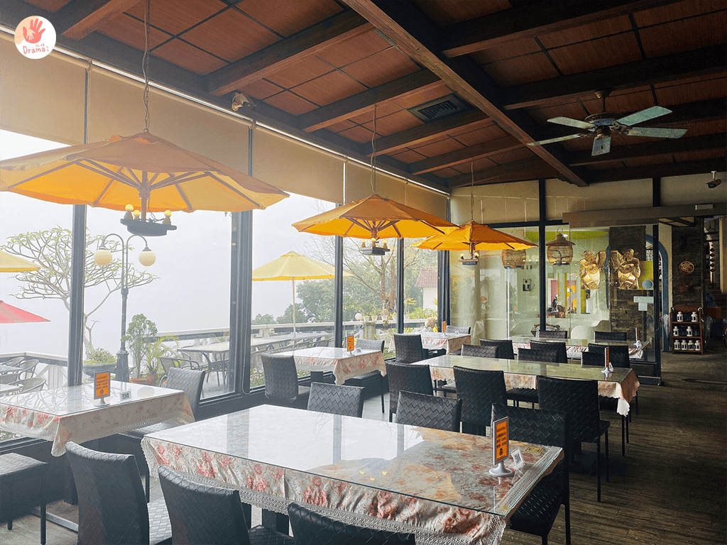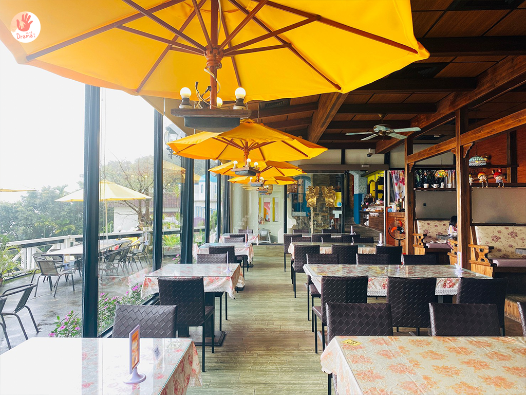 吊燈結合陽傘的讓空間更愜意,暖設計的裝潢讓心情很放鬆