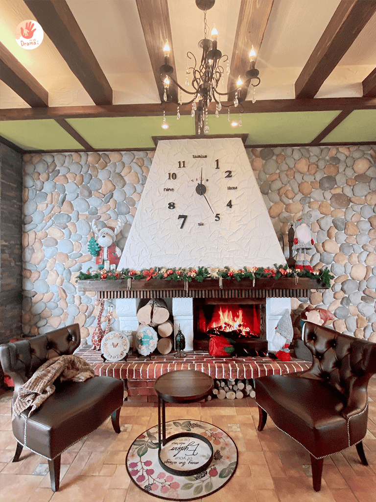這個假壁爐的氣氛營造更是無話可說,很有歐式客廳的風格,女鵝飯後一直在這假烤手