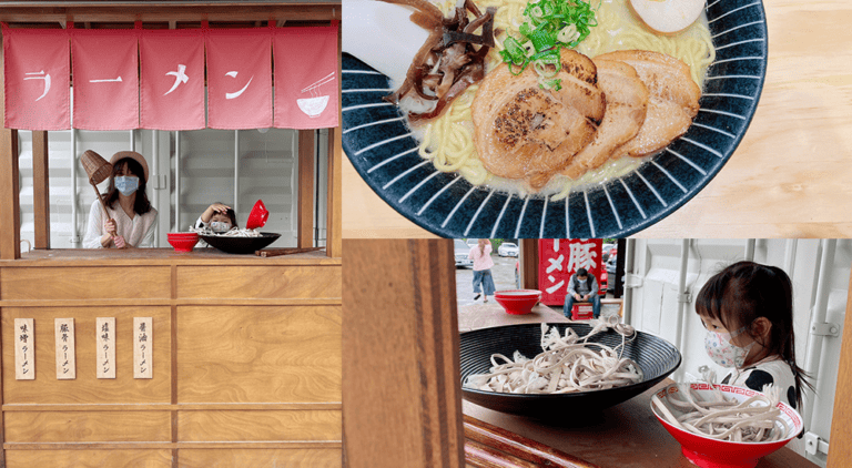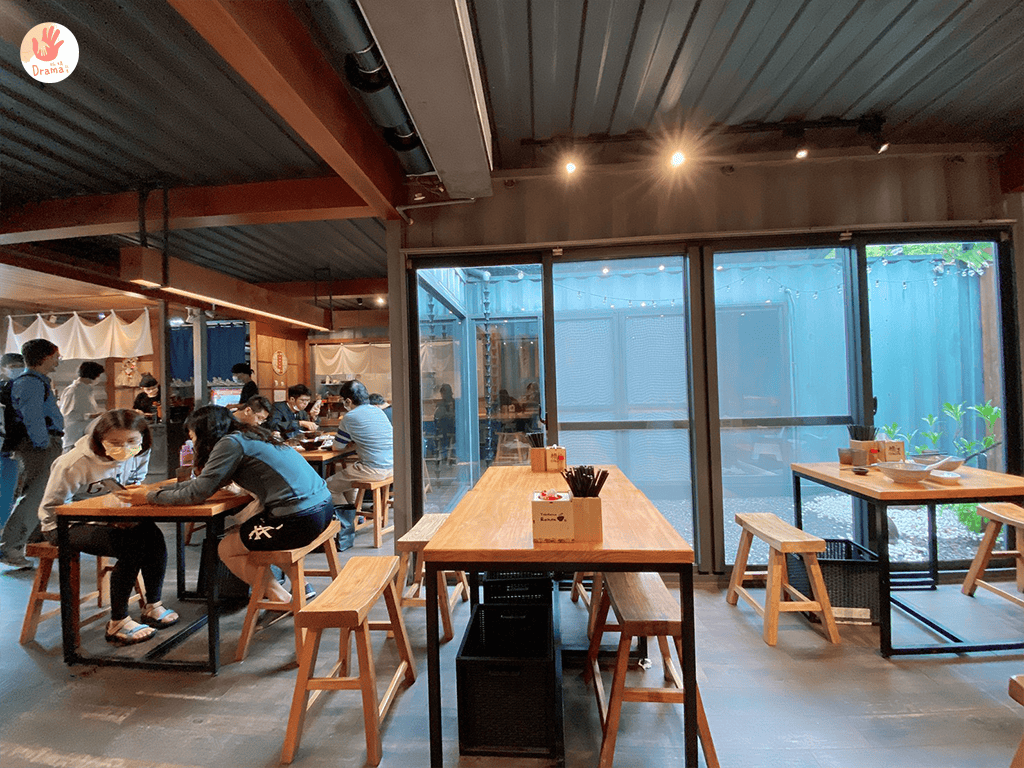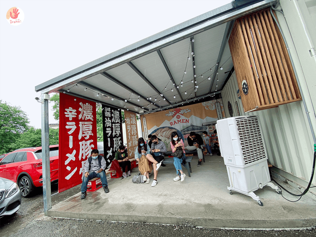 以貨櫃屋為建物的[橫濱拉麵]有貼心的設計了候位的空間