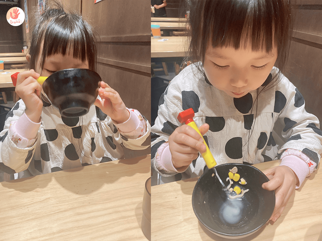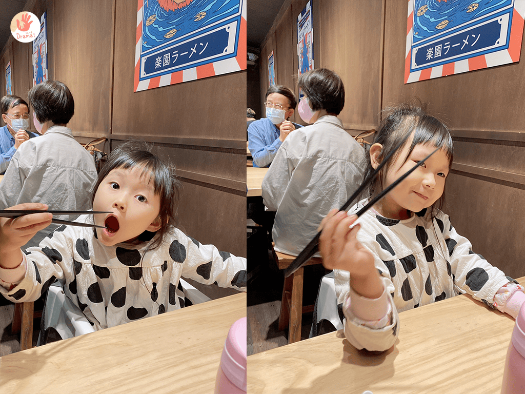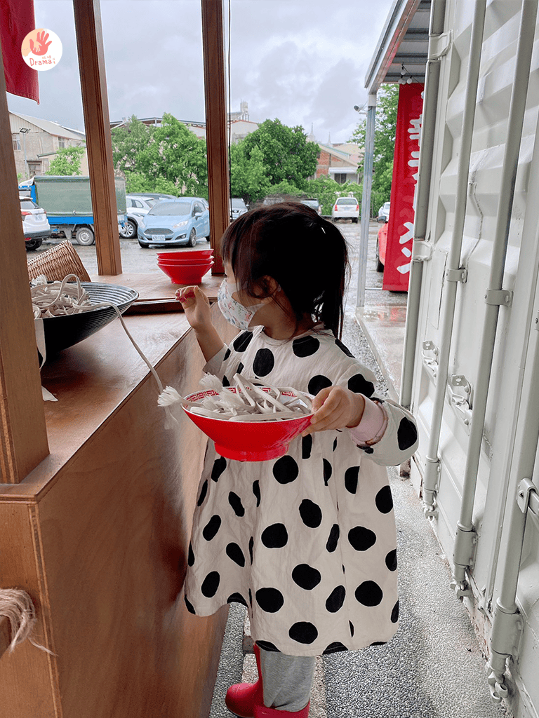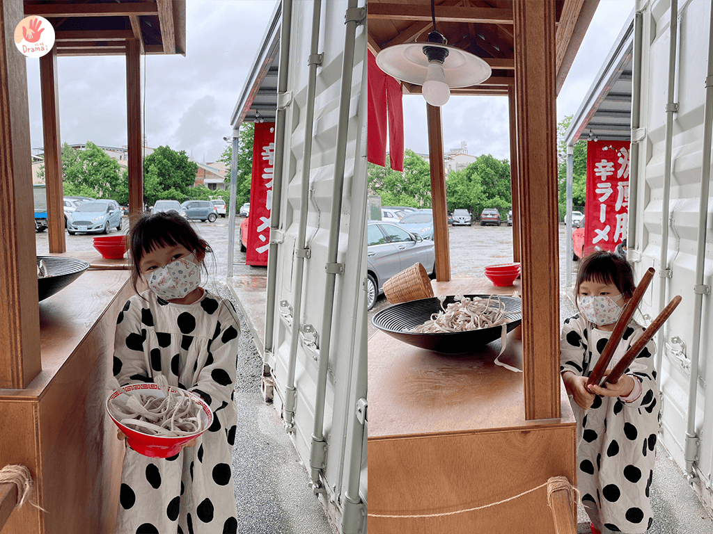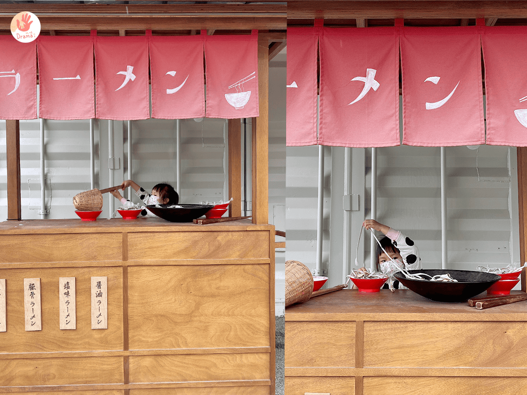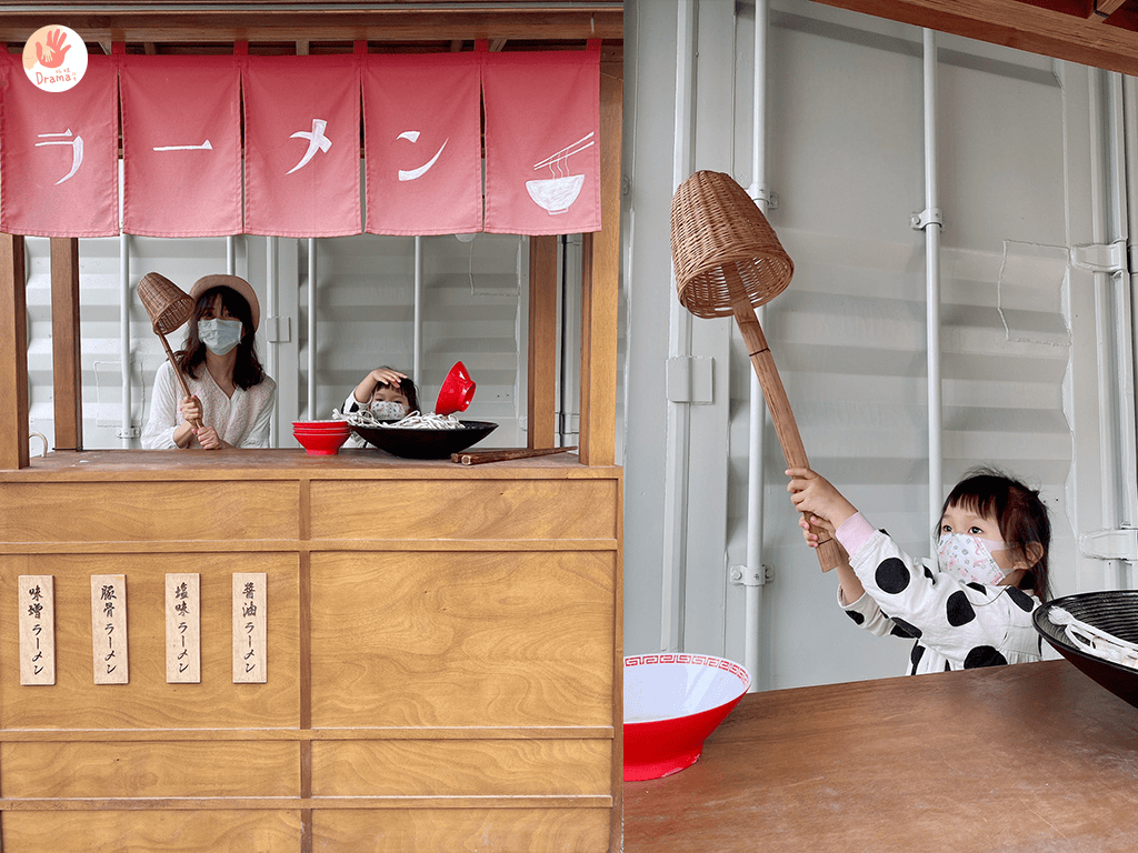 最感人的是還有一個木製文青風的拉麵攤,還擺放了巨大的碗和麵勺,剛好讓女鵝可以玩家家酒