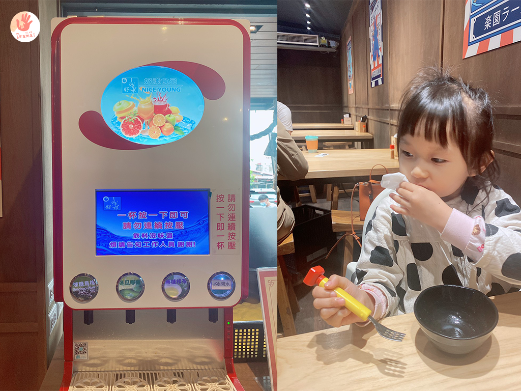 [埔里橫濱拉麵]是間超人氣平價拉麵店,中午用餐時間錯過第一輪流就是得排上一小時,還好戶外有一個偽麵店,讓女鵝可以在那邊玩個半小時,不然有小孩真的不耐這樣等呀。
