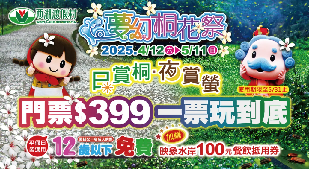要看螢火蟲和油桐花可以到三義的 [西湖渡假村]或[卓也小屋]輸入抓媽行程專屬碼DRAMAFUN99享優惠