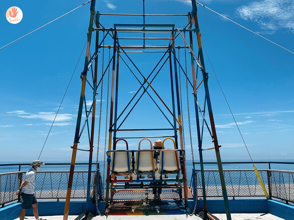 迎向大海的鞦韆真的美極了!上來才知道這是要用踩的鞦韆,只有我一個人實在盪不高