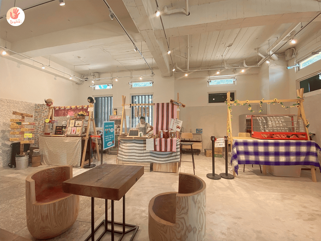 左側空間是部落市集,有一些小輕食餐飲和手工手作商品,可以在這裡稍坐休憩等候鞦韆的整點場次