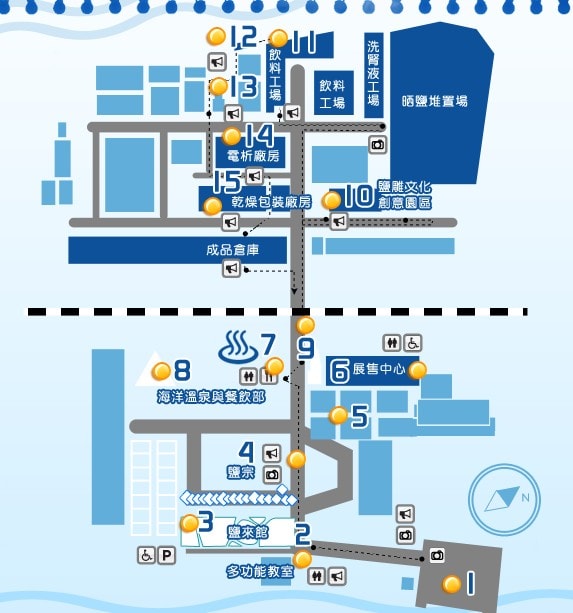 [臺鹽通霄觀光園區]這個園區很大,包含「鹽來館」、「親水廣場」、「鹽鄉小棧」、「日式庭園造景」、「海洋溫泉泡腳溪」、「鹽宗-夙沙氏雕像」、「展售中心」通通都是免費參觀。