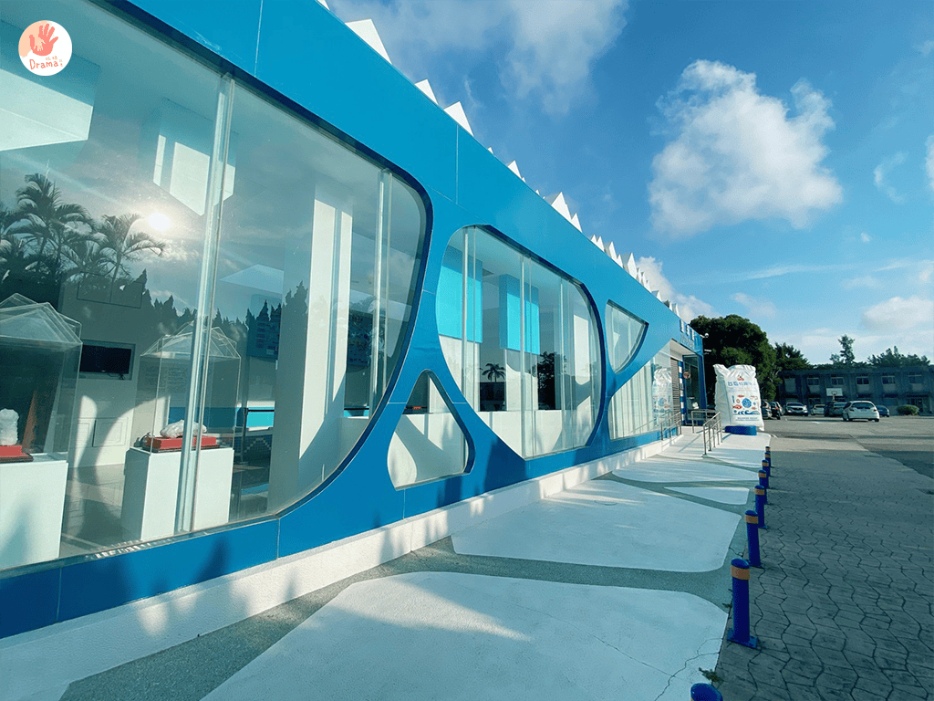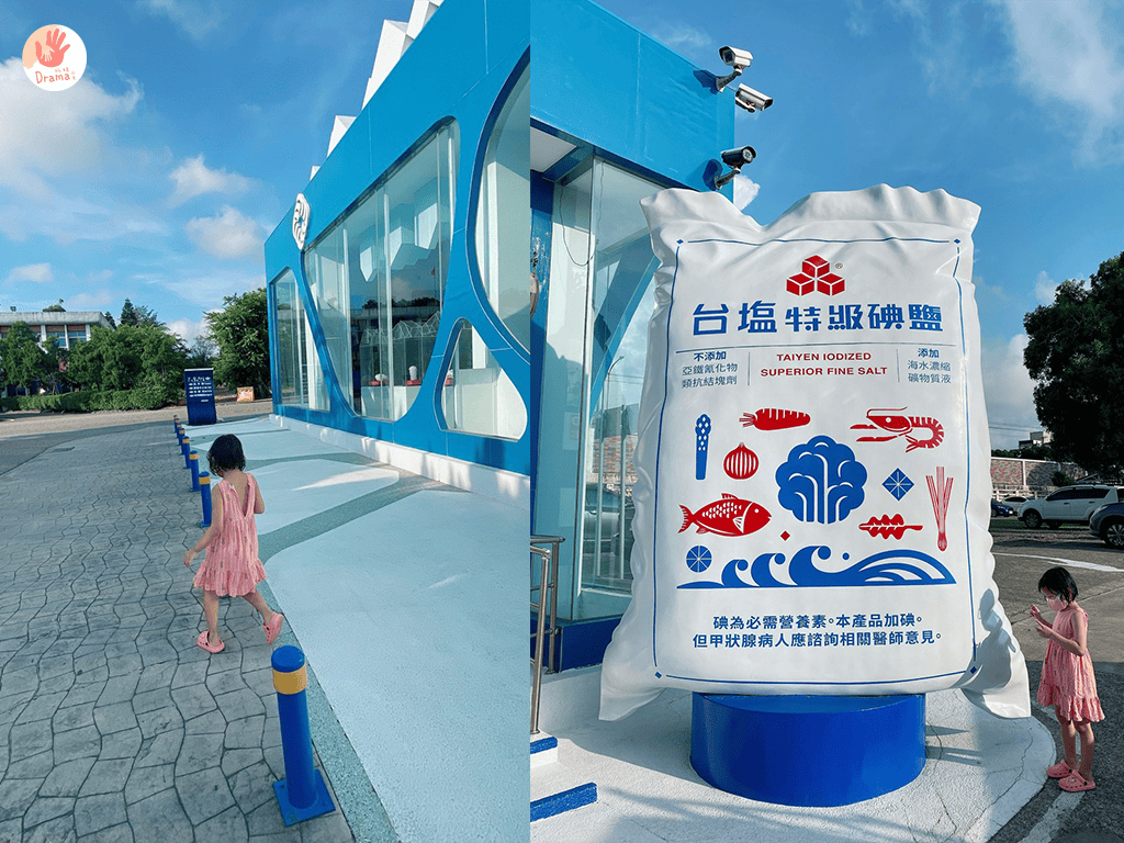 藍白外牆的建築物很流線型很吸睛,顛覆對台鹽傳統老字號的印象,我們先去玩水玩到閉園所以沒參觀到鹽來館