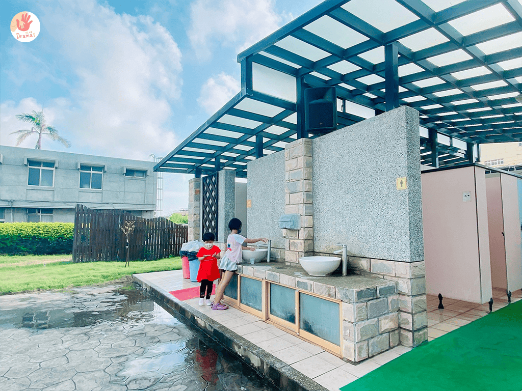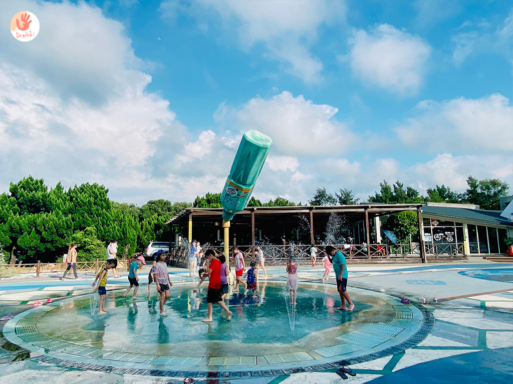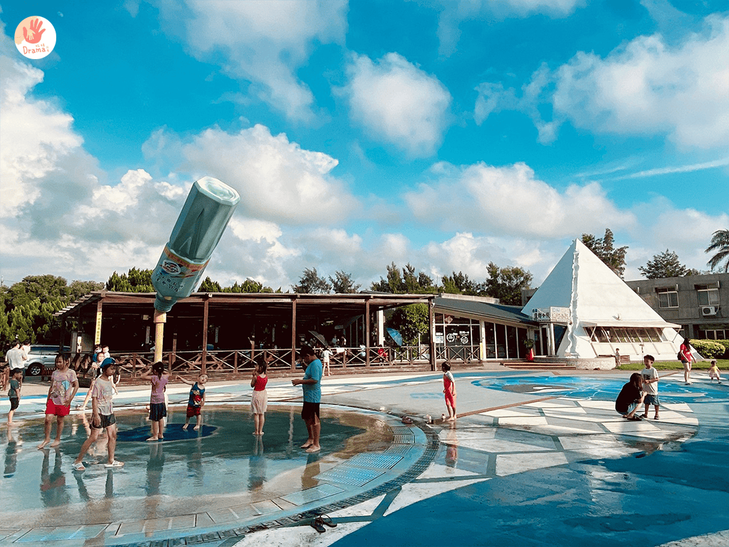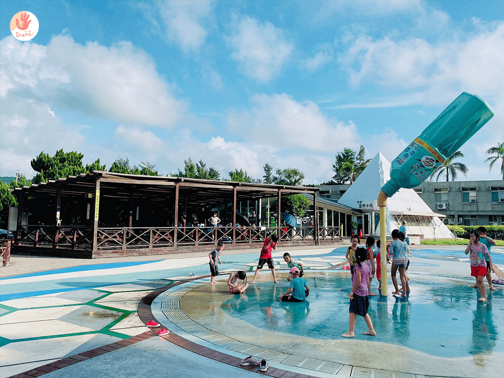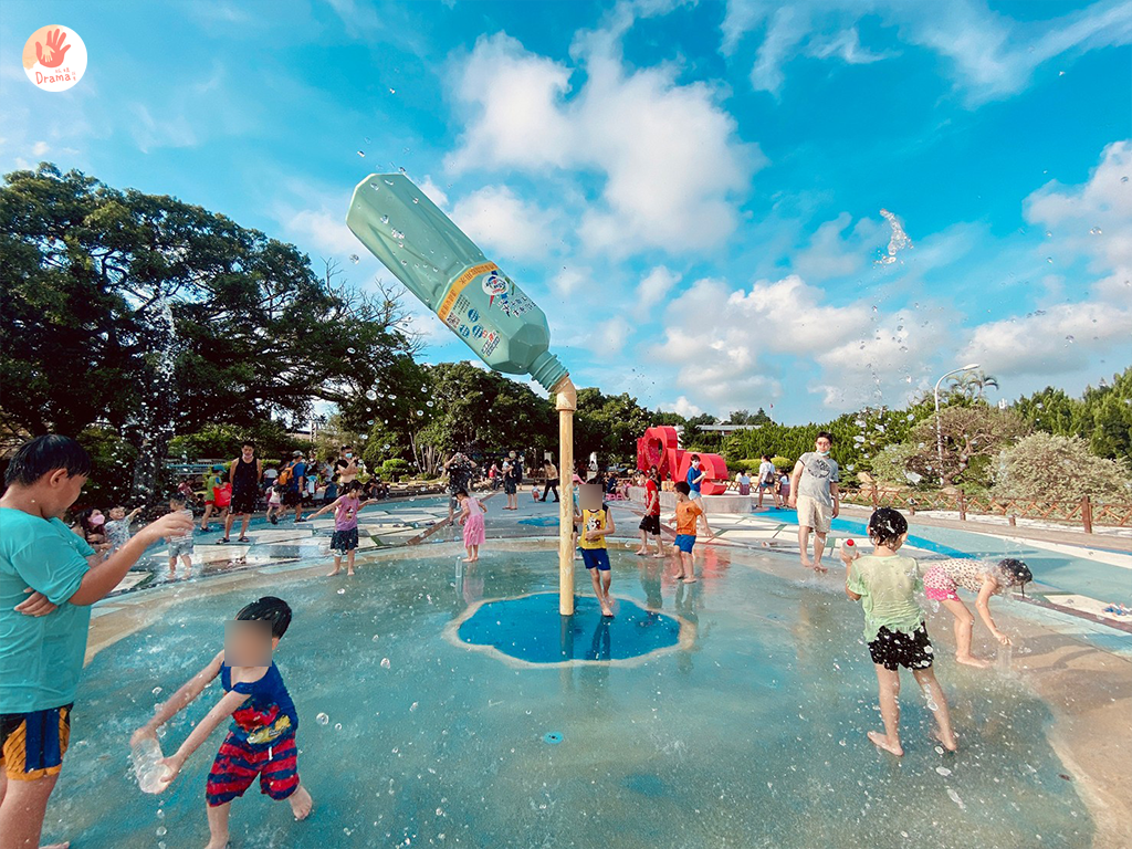 巨型飛天寶特瓶噴水池的戲水區,廁所完善也有淋浴的設施,非常佛心。但這裡放水時間不長,要留意不要太晚來喲