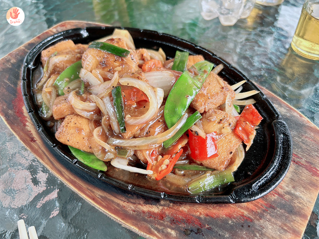 這道菜名叫這不是臭豆腐,這是用豆皮去炸,下面有泡菜,酸甜口味蠻特別的