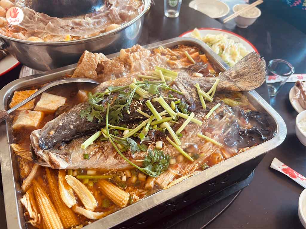 重慶烤魚|烤雞|酸菜白肉鍋是要先預訂的,來聚餐很推薦要點,重慶烤魚我們點麻辣口味,但其實不太辣,下次會想叫老闆再加辣一點,哈哈