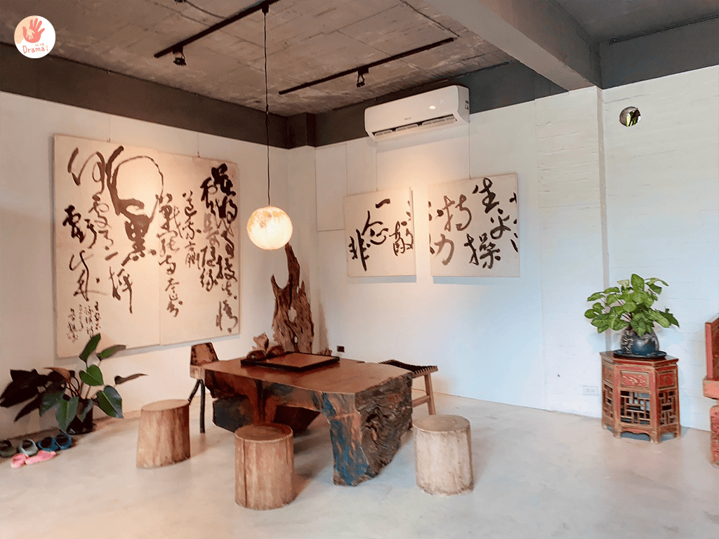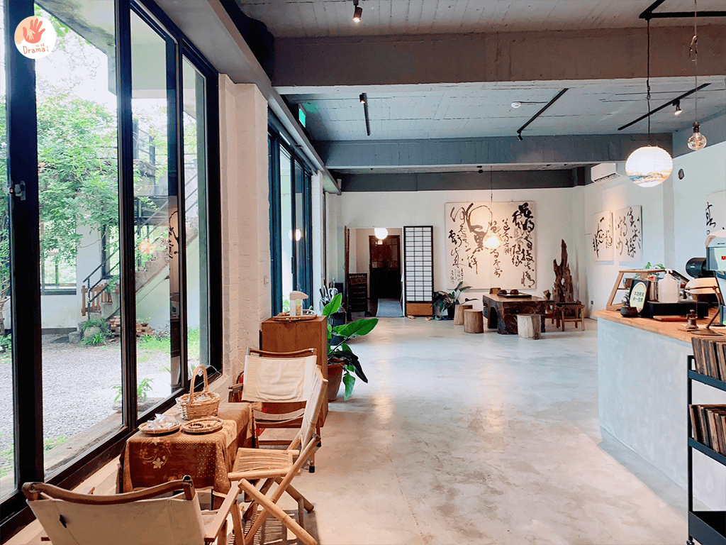 ㄇ字的一樓空間,入口是在中間的玻璃門,這裡有吧台,也有一個充滿禪意泡茶桌,上面還放了五子棋及棋盤,這裡也是座位區喲